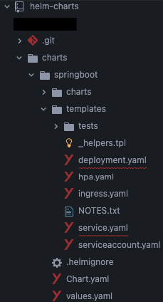Generamos a continuación la estructura de nuestro chart, como digo, destinado a servirnos aplicaciones Springboot